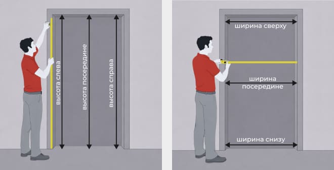 Измерьте ширину и высоту дверив трех точках, запишите наименьший размер